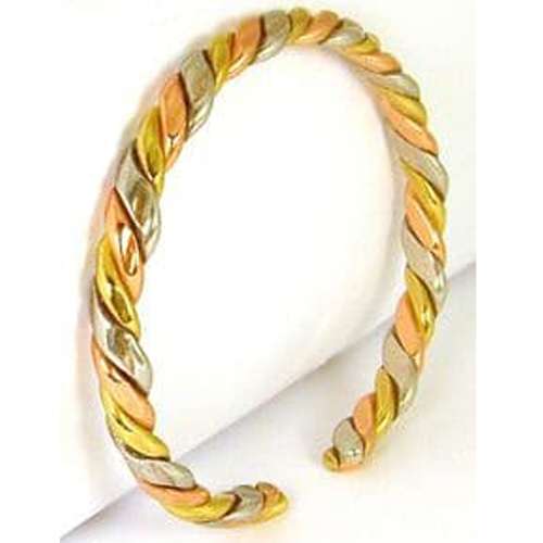 An attractive three colour unisex ever popular Bangle/bracelet, made from Copper, Brass and Aluminium Twisted Design.
