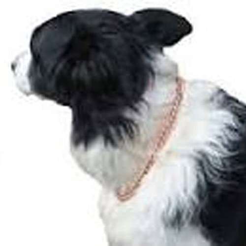 These chains are made from pure copper and are suitable for the relief of medical issues ONLY, Copper being a relatively soft metal will ensure the chain will come apart if put under undue pressure thereby ensuring your pets safety, please be sure to use alongside a normal dog collar, should the chain become snagged or caught on anything, we strongly advise that the first few time you put it on your pet you are in a position to “keep watch” in case your pet should try to rub or scratch it off or it will probably become lost.